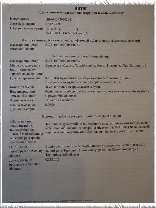 Дата объявления: 2, обновлено: 2, участок, Мерефа. М. Південний / м. Мерефа ділянка під забудову, Харківський район Харківський район , м. Південний ! Земельна ділянка під забудову ( приватна власність , тобто є і кадастр ) розміщена на заселеній вулиці між двох інших ділянок з будинками . Вулиця з твердим покриттям в м Південний на кордоні з м. Мерефа . В 50 метрах траса кол. Вулиця Луначарського. 2 300 $ Договірна Харківська область, Мерефа Євген Вн: a1 - 18.11.2024, Кор(вручную): a1 - 18.11.2024 Подробнее об этом объекте на сайте 20.estate