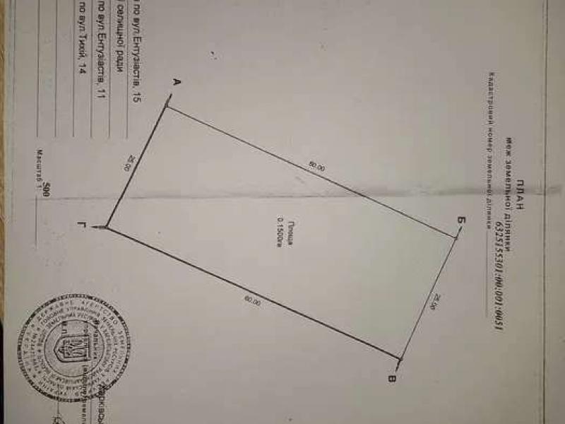 Дата объявления: 2, участок, Бабаи. Продам 1/2 земельної ділянки поблизу м. Харкова Продам 1/2 земельної ділянки площею 0, 15 га. Тобто продається 7, 5 соток. В селищі Затишному Харьковского району (Височанська селищна громада). Цільове призначення: для будівництва і обслуговування житлового будинку, господарських будівель і споруд (присадибна ділянка). Гарне розташування, від Харкова. 14-16 км, від Бабаїв 4 км. Адреса ділянки: вулиця Ентузіастів, 13 (нині перейменована у вулицю Проліскову). Ціна = 100 тис. грн. за 7, 5 соток. Селище розташоване у істоків річки Ржавчик, на якій створена серія ставків, які використовуються для відпочинку та рибалки. В селищі переважає степний ландшафт, однак у сторону Бабаїв и Хорошево починаються лісні масиви. 100 000 грн. Ольга Бабаї Харківська область Вн: a1 - 07.01.2026, Кор(вручную): a1 - 07.01.2026 Подробнее об этом объекте на сайте 20.estate