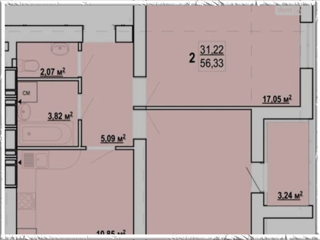 Общая площадь: 56 м2