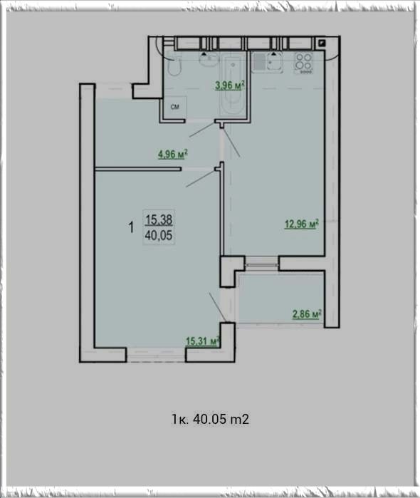 Общая площадь: 40 м2