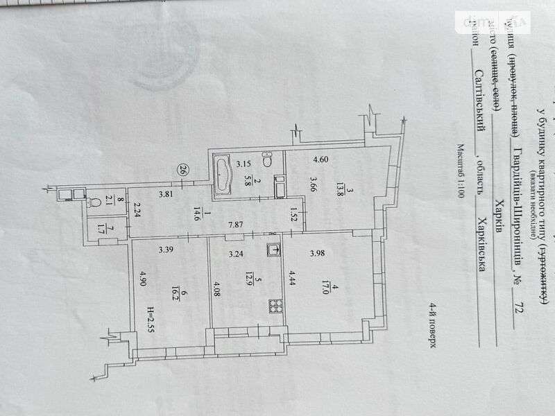 ЖК Дата объявления: 2, 3 к, Харьков, Северная Салтовка, ул. Гвардейцев Широнинцев 72. Продаж 3к квартири 86.3 кв. м на вул. Гвардійців-Широнінців 72 Продам 3-кімнатну квартиру в новобудові на Північній Салтрвке, ЖК " Меридіан ", секція 2, Будинок Зданий, поруч з ТРЦ " Екватор ". Квартира знаходиться на 4 поверсі 19 поверхового будинку. Загальна площа - 87 м2, житлова площа - 47 м2, Будівельний стан, горизонтальна розводка опалення, є можливість встановити індивідуальний лічильник на тепло. Комплекс включає в себе: наземний паркінг і дитячі майданчики, зони відпочинку, магазини, кафе. Поруч вся необхідна інфраструктура: дитячі сади, школи, супермаркет "Велмарт ", ринок, зупинка громадського транспорту. Район Салтівський, мікрорайон Північна Салтівка, ЖК Меридіан. Телефонуйте! 45000 $ Валентин Вн: a1 - 11.09.2025, Кор(вручную): a1 - 11.09.2025 Вн: a1 - 11.09.2025, Кор(вручную): s10 - 11.09.2025 Подробнее об этом объекте на сайте 20.estate