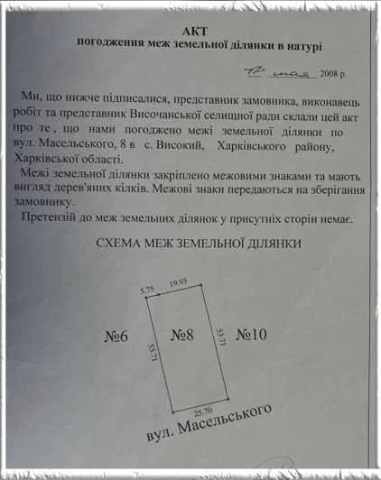 Дата объявления: 2, участок, Высокий. Земельний участок в Високому Продам власний участок під застройку 13 соток правильної прямокутневої форми, Високий, вул. Масельського 8в, Височанська сел.Рада Розмір 13 соток (20 х 53 ) із рівним рел"єфом. Землю передано для будівництва та обслуговування житлового будинку. Документи: Державний акт на право приватної власності на землю. Красиве живописне місце. 5 хвилини пішої ходи до магазину, кіосків, до зупинки маршрутки. ВЛАСНИК. Без комісії !!! Предлагайте Вашу цену 5 000 $ Договірна Харківська область, Високий alexsheva123 Вн: a1 - 08.05.2024, Кор(вручную): a1 - 08.05.2024 Подробнее об этом объекте на сайте 20.estate