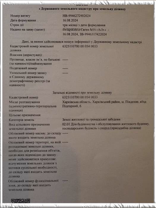 Дата объявления: 2, обновлено: 2, участок, Мерефа. М. Південний / м. Мерефа ділянка під забудову, Харківський район Харківський район , м. Південний ! Земельна ділянка під забудову ( приватна власність , тобто є і кадастр ) розміщена на заселеній вулиці між двох інших ділянок з будинками . Вулиця з твердим покриттям в м Південний на кордоні з м. Мерефа . В 50 метрах траса кол. Вулиця Луначарського. 2 300 $ Договірна Харківська область, Мерефа Євген Вн: a1 - 18.11.2024, Кор(вручную): a1 - 18.11.2024 Подробнее об этом объекте на сайте 20.estate