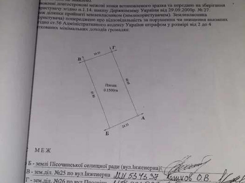 Дата объявления: 2, обновлено: 2, участок, Песочин. Продам участок под застройку в Песочине сан "Роща" Продам в Песочине участок 15 соток под застройку рядом с санаторием "Роща". Улица Инженерная 27. Полный пакет документов. Собственник. Участок ровный, удобный заезд, асфальтированная дорога.С трёх сторон есть соседи. Электричество, газ проходит по улице. Недалеко от санатория "Роща" Рядом есть водоёмы и лес. 10 500 $ Роман Пісочин Харківська область Вн: a1 - 15.09.2025, Кор(вручную): a1 - 15.09.2025 Подробнее об этом объекте на сайте 20.estate